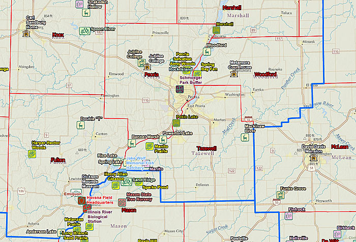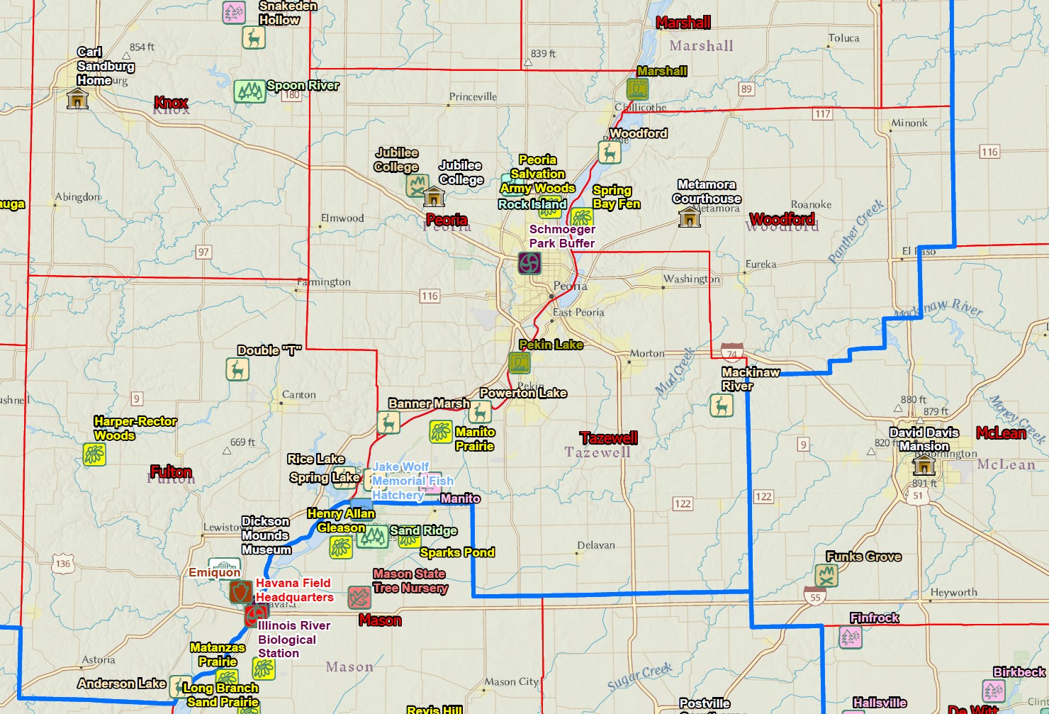 Peoria County. It is a ˝ mile long strip near Brimfield that
