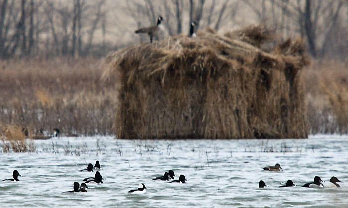 Ring-necked Ducks and Redhead In the above highly cropped image, you can a Redhead swimming among a few Ring-necked Ducks